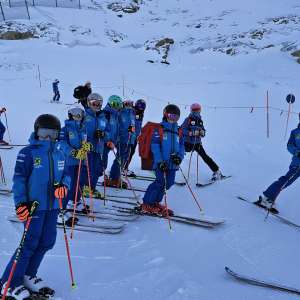Hoch oben am Berg auf über 3000m auf dem Kitzsteinhorn flitzen sie bereits in ihren blauen Skianzügen unverkennbar umher.